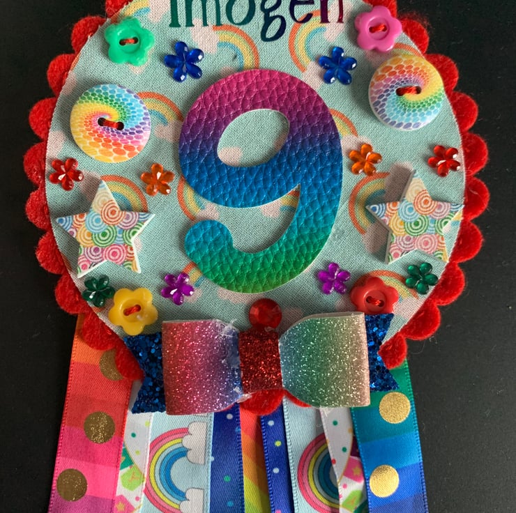 Birthday badges made in felt/fabric, lovely bunting makes a fab birthday badge, finished with lovely bow