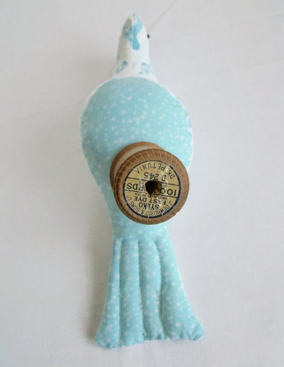 Here we have a plush ornamental bird using a vintage Sylko wooden bobbin.