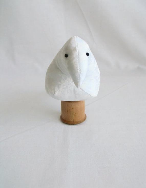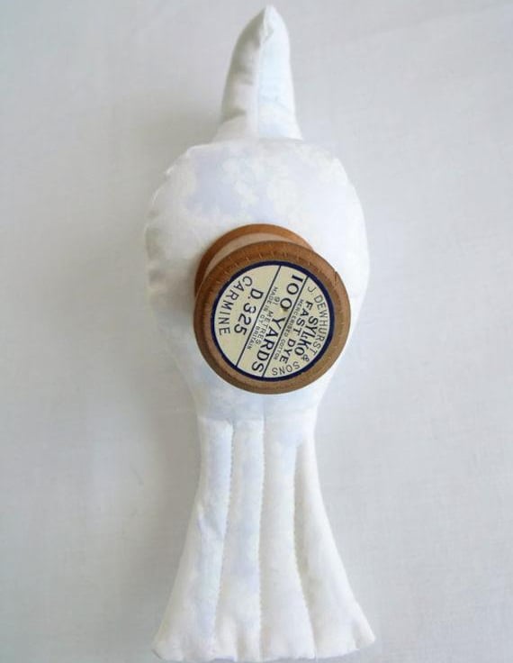 Here we have a plush ornamental bird using a vintage Sylko wooden bobbin.