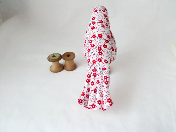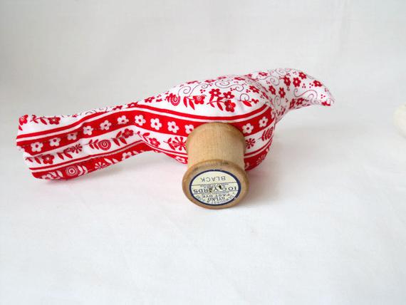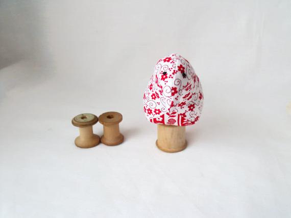 Here we have a plush ornamental bird using a vintage Sylko wooden bobbin.