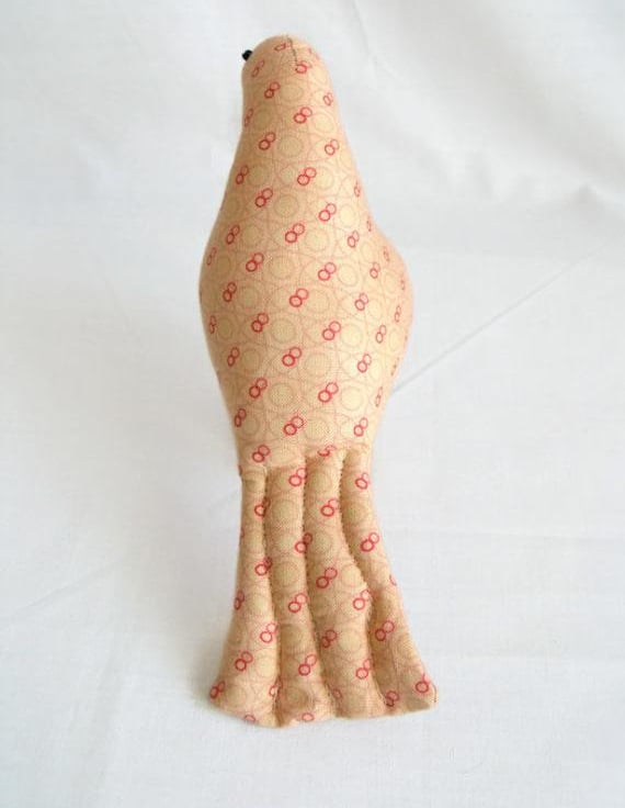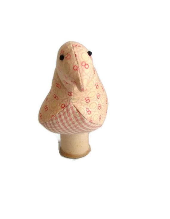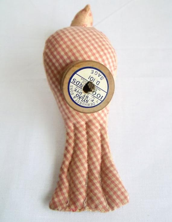 Here we have a plush ornamental bird using a vintage Sylko wooden bobbin.