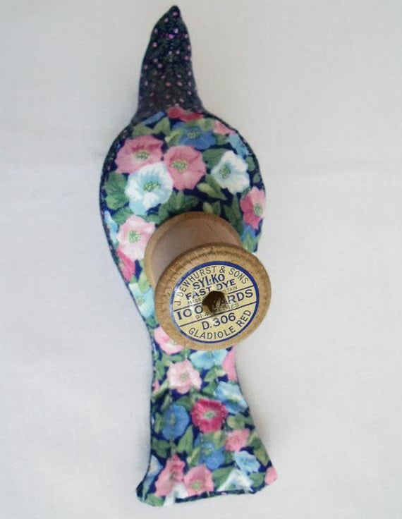 Here we have a plush ornamental bird using a vintage Sylko wooden bobbin.