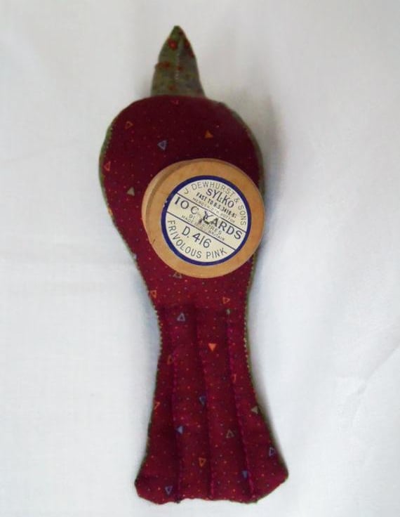 Here we have a plush ornamental bird using a vintage Sylko wooden bobbin.