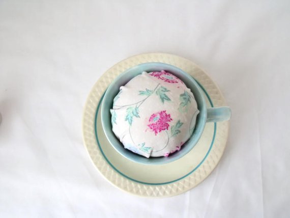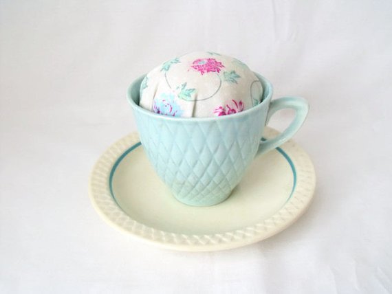 Here we have a tea cup and saucer pin cushion using vintage Biltons china.