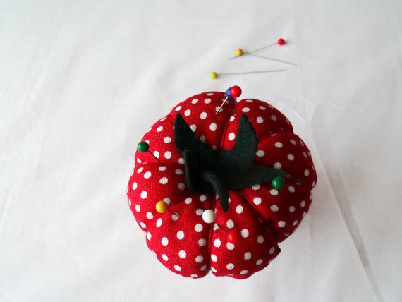 A novelty tomato pin cushion.