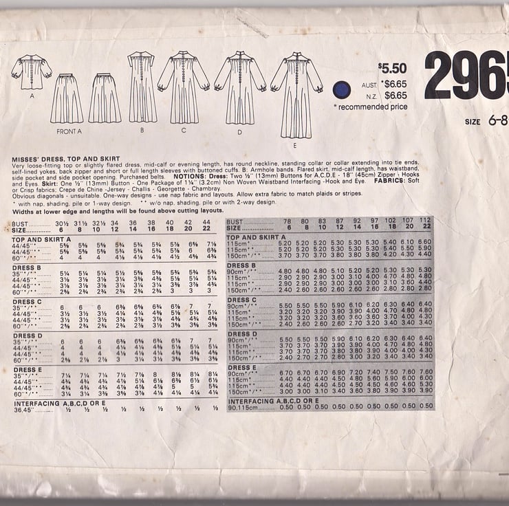 Suggested fabrics are: Crepe de Chine, Jersey, Challis, Georgette, Chambray.
