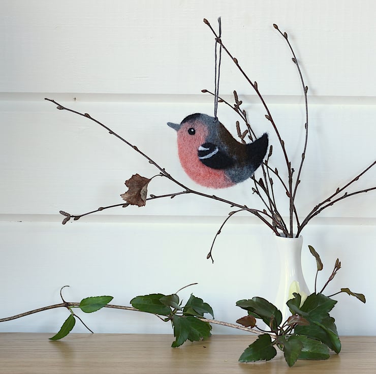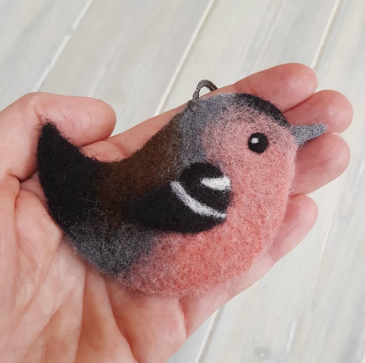 He has been carefully created from a mound of fluffy, dry wool fibres using a fine barbed felting needle to repeatedly stab them until they interlock, which over quite a bit of time blends all the colours together to give each bird a unique plumage and character.