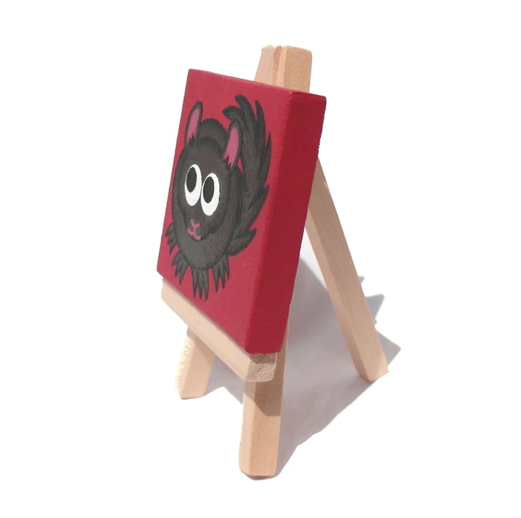 This original art of a chunky cartoon rodent is painted in acrylics on a miniature 7cm (2.8") square canvas, which has been signed and dated on the back.