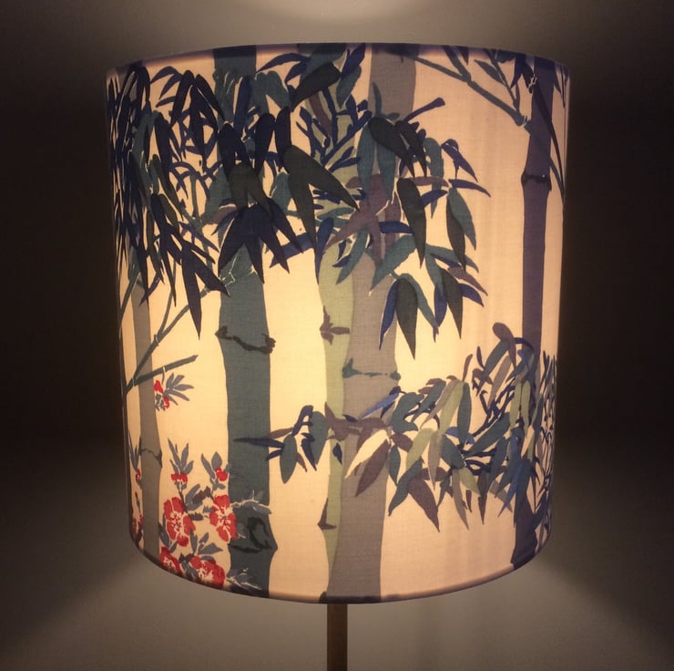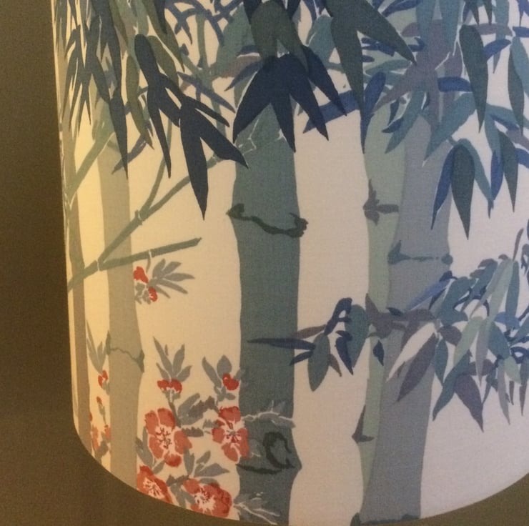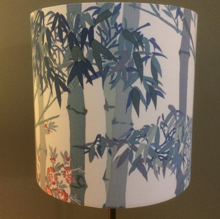 Bamboo Oriental Chinoiserie Blue and Red Lampshade in 70s 80s vintage fabric - great in either a modern or traditional home.