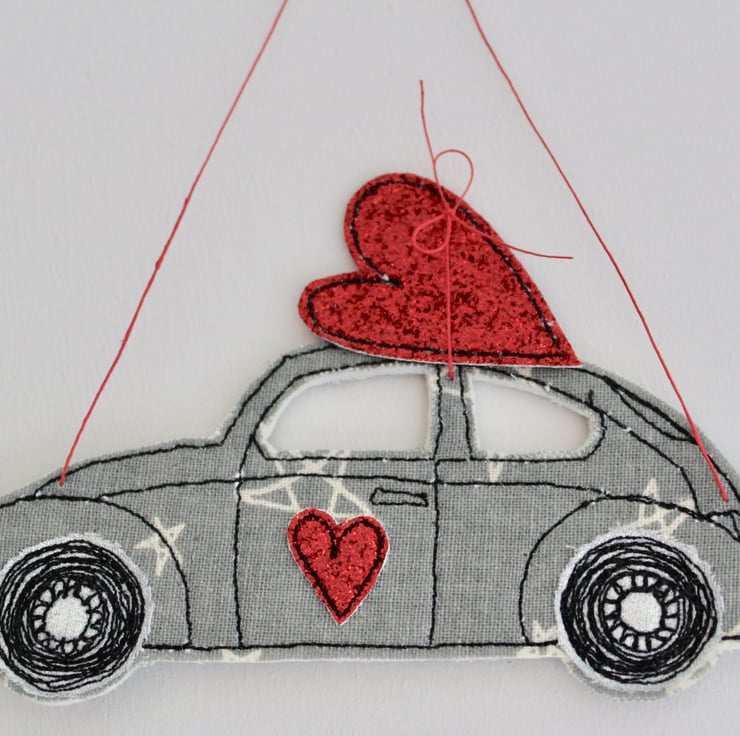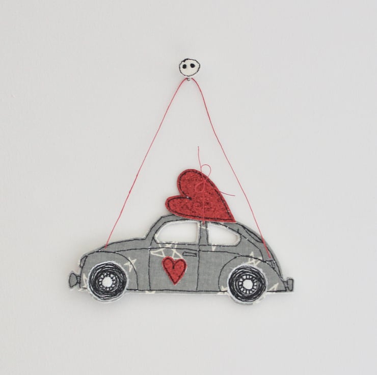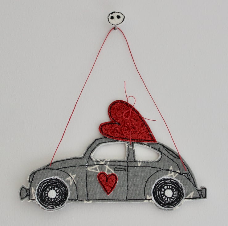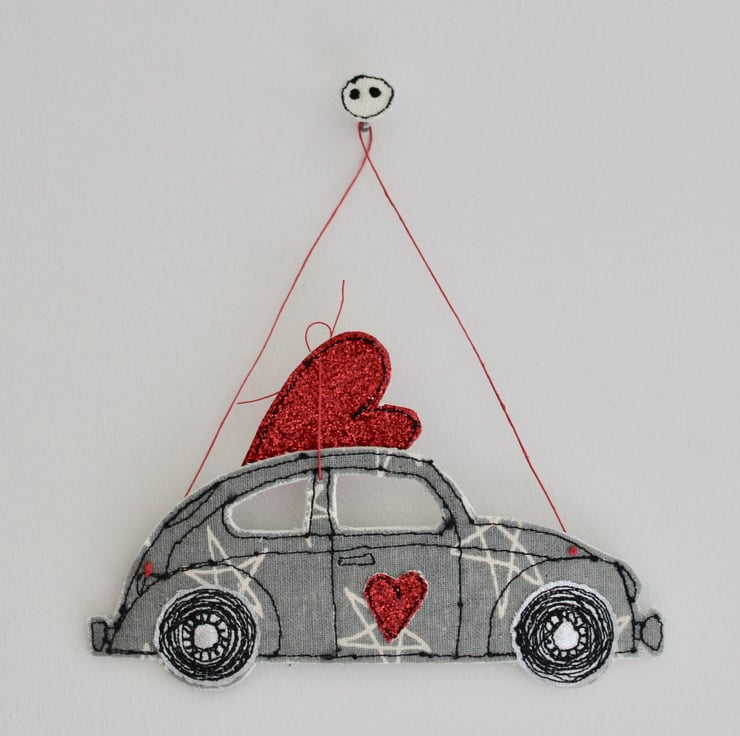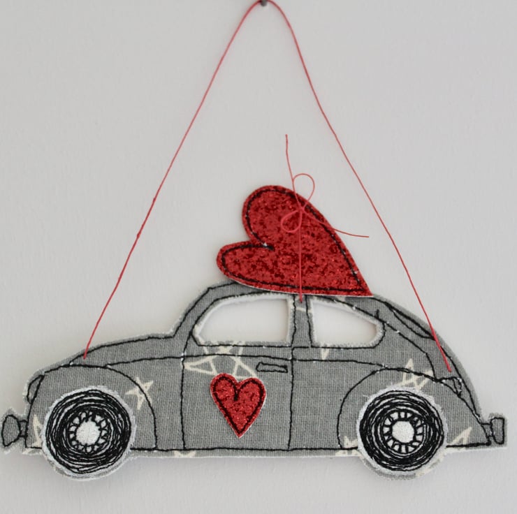 With a red glittery heart attached to its roof, this 'love bug' is travelling home, maybe in time for Valentines.