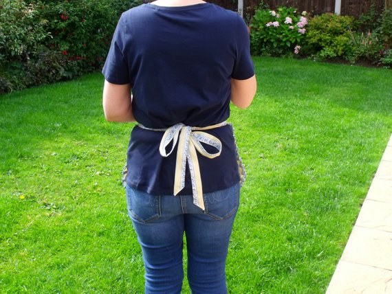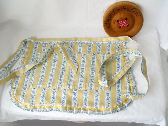 This is a versatile vintage style utility half apron for gardening, baking, cleaning or crafting