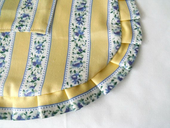 Sewn with vintage yellow and blue poly-cotton fabric.