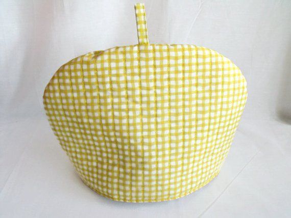 Yellow quilted fabric tea pot cozy, tea warmer.