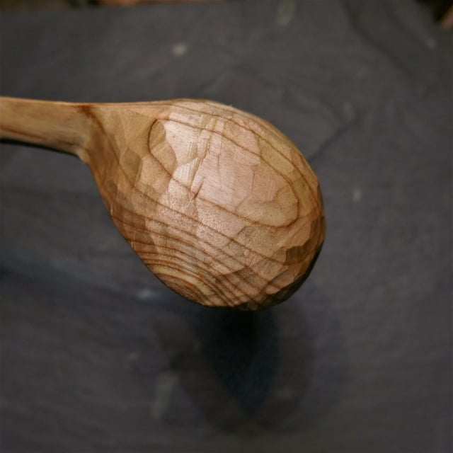 A serving or cooking spoon handcarved in the traditional way from Chinese Wingnut wood.