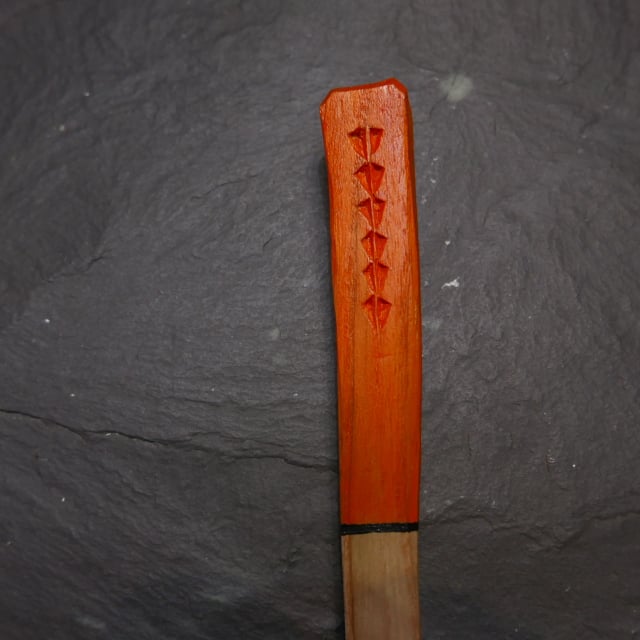 The spoon is about 13" in length with a 3" bowl with a chipcarved design on the handle.