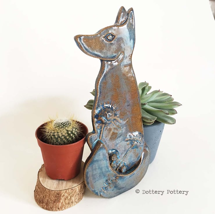This ceramic fox decoration is made from textured stoneware clay with all the individual pieces hand cut and decorated with pattern. It is then fired and decorated with stoneware glazes and re-fired to 1260 degrees making it nice and strong. It has a metal hanging D loop attached to the back so that you can hang it wherever you like. Fox dimensions are 20cm tall x 9cm wide x 1cm deep. Was £16 - now £11.20