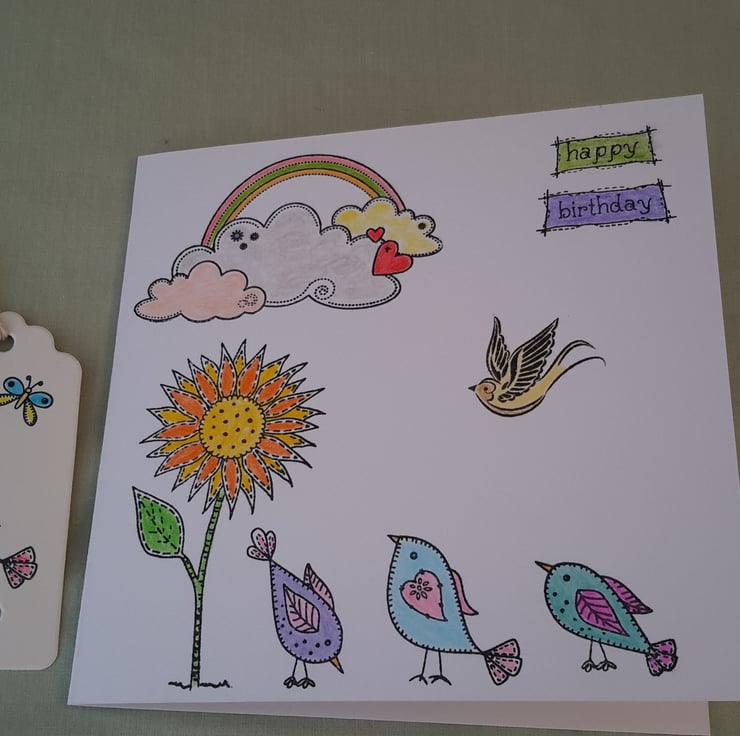 1 x Happy Birthday, bird themed with matching tag and left blank on the inside for your own message