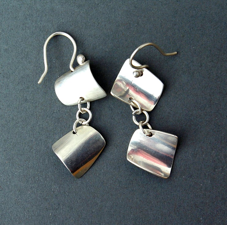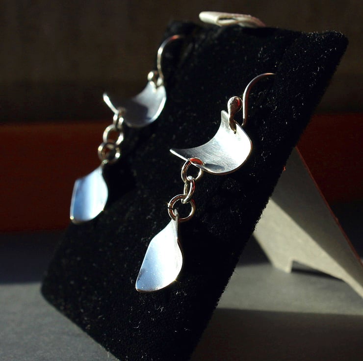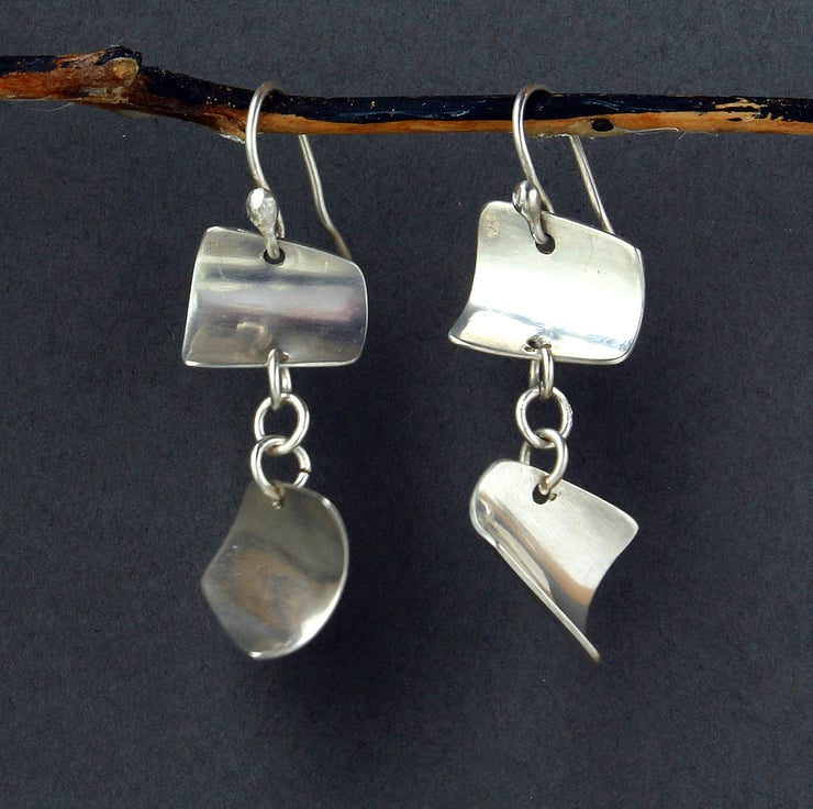 Gentle sails of curved silver are joined to give these impressive looking dangle earrings.