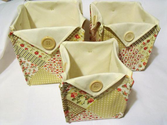 Here is a useful set of three fabric storage bins. Stackable buckets.