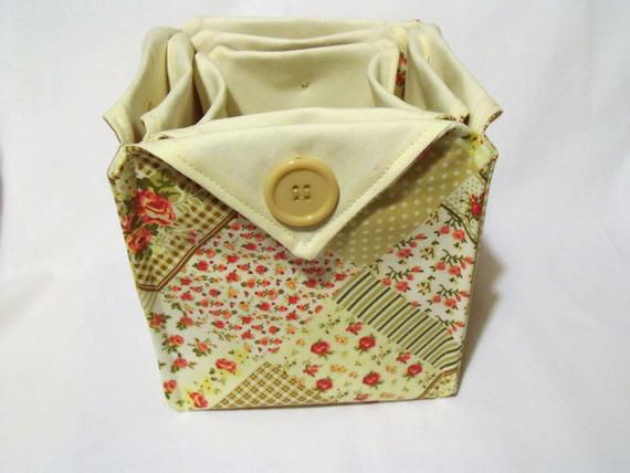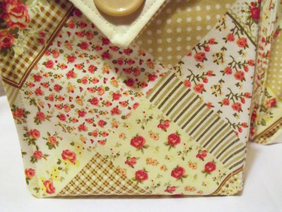 Sewn with cotton faux patchwork outer in beige, yellow, deep red and pink.