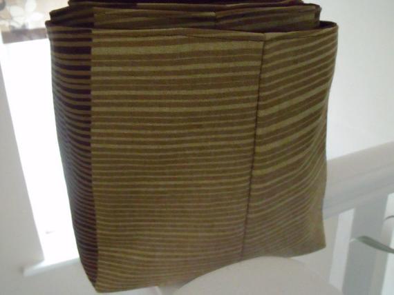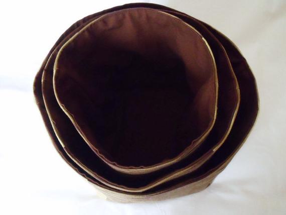 Sewn with linen fabric for the outside and brown upholstery weight cotton for the inside.