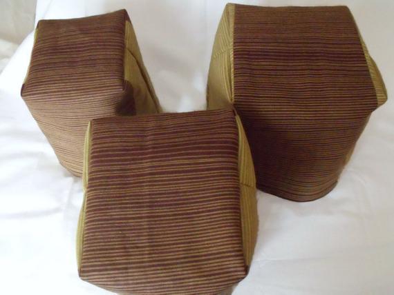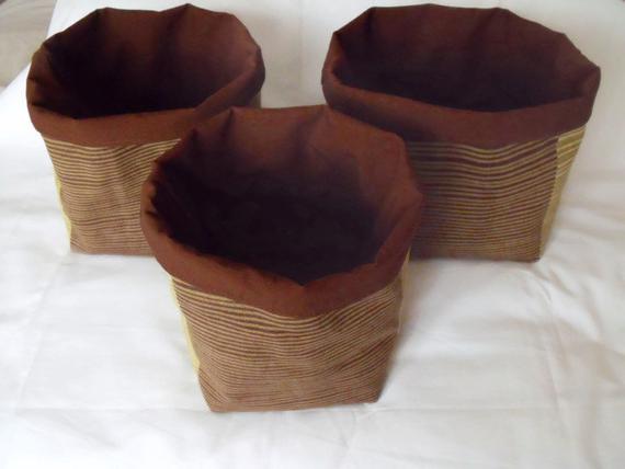 Here is a useful set of three fabric storage bins. Stackable buckets.