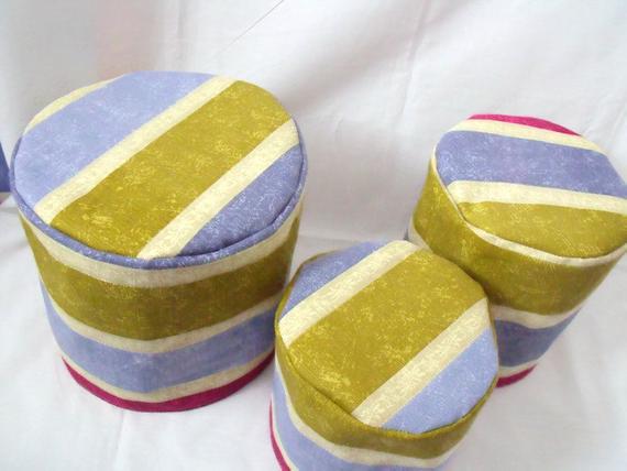 Here is a useful set of three quilted fabric storage bins. Stackable buckets.