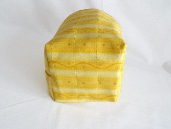 Sewn with yellow upholstery weight cotton fabric which I've sewn onto buckram which is a heavy weight interfacing to maintain the structure.