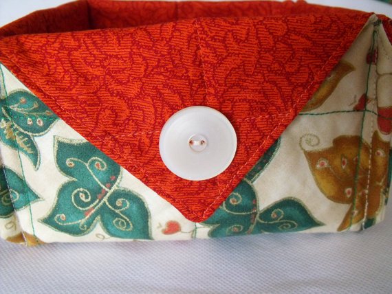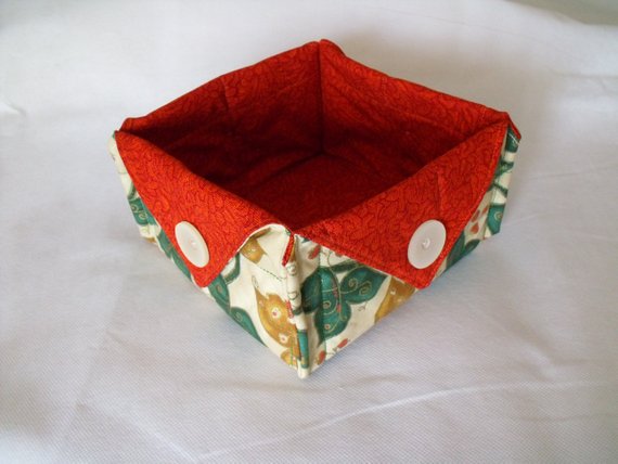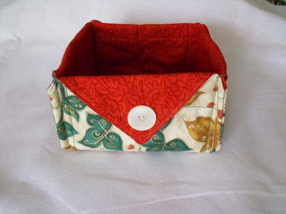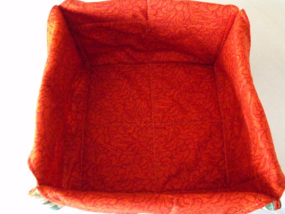 This quilted storage basket is sewn using cream ivy green, gold and terracotta outer fabric.