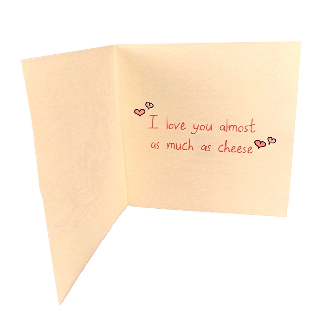 The inside of the card has the message "I love you almost as much as cheese", for when you want to show someone how much you care, while still getting your priorities straight.