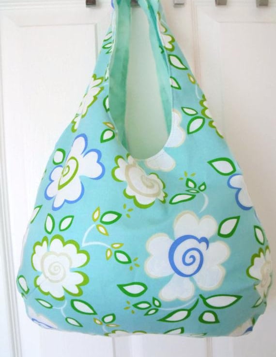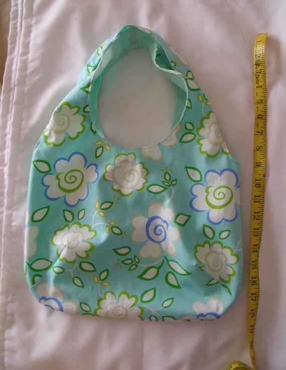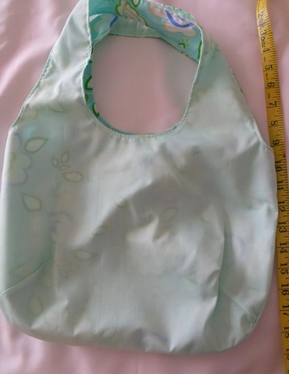 Sewn with free spirit kumara garden fabric in mint green floral outer and plain green lining.