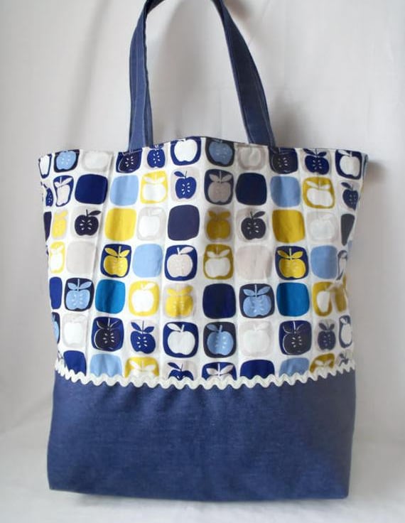 The top section is quilted using John Lewis apple fabric in blue and yellow.