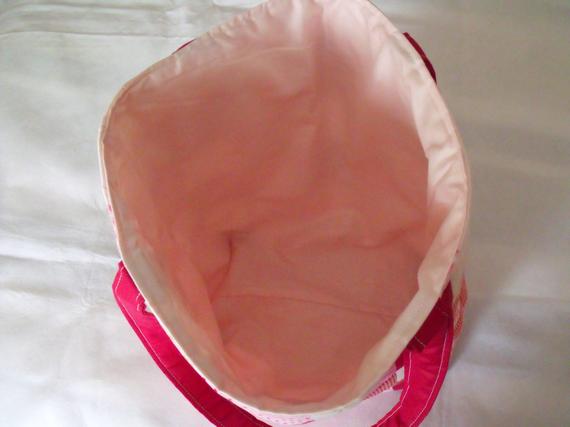 Bag measures 4" deep, 13.5" high, 15.5" across the rim and 11" across the base.