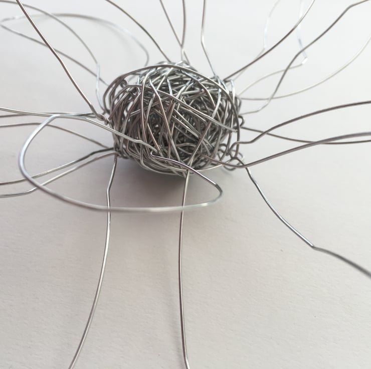 Wire Art pottery flower sculpture. My wire art is designed and made by hand using a fine silver wire. The piece is sculpted using my fingers and jewellery clippers.