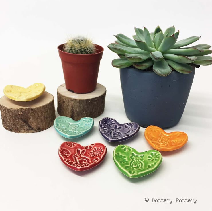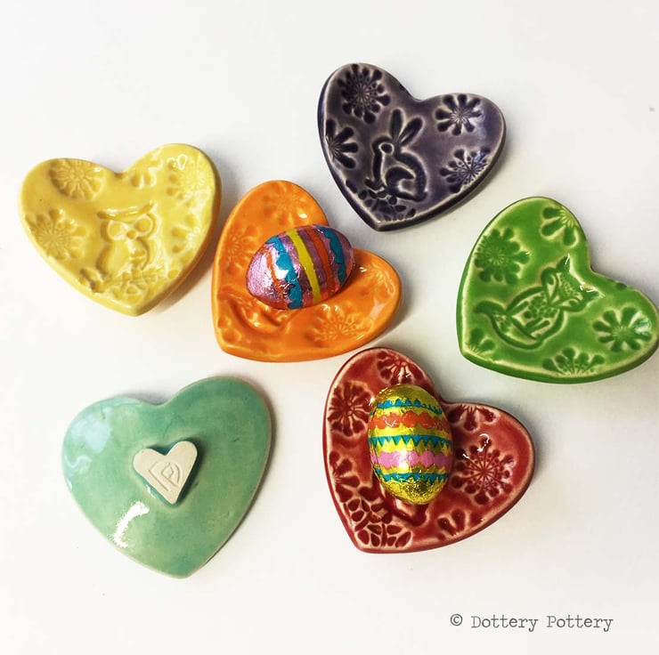 This listing is for the TURQUOISE OWL love heart teeny dish only (The other colours and designs have their own separate listings). This teeny, little dish, is glazed in a bright, glossy glaze. It is made from white earthenware clay and fired to a top temperature of 1100 degrees, so it is nice and strong. Dish measures 4cm across x 1cm deep. Finished in a food safe glaze. Perfect as a Valentines Day gift or would look sweet with a little egg in for Easter. It could be used as a trinket or ring dish too.