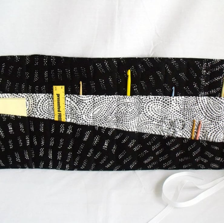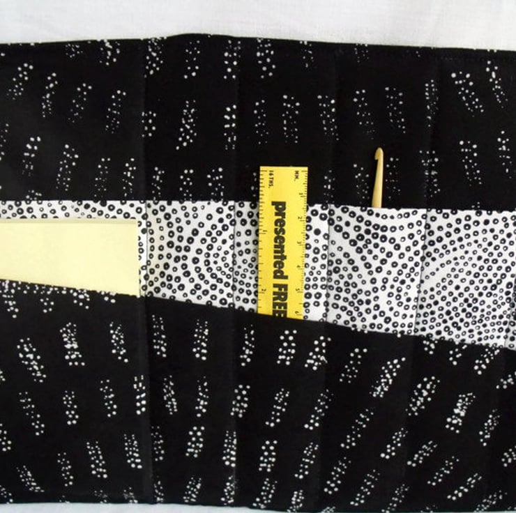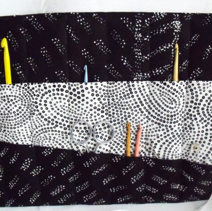 Useful storage solution to keep your hooks all in one place as well as your scissors, stitch markers, needles, pins, tape measure and notelets etc.