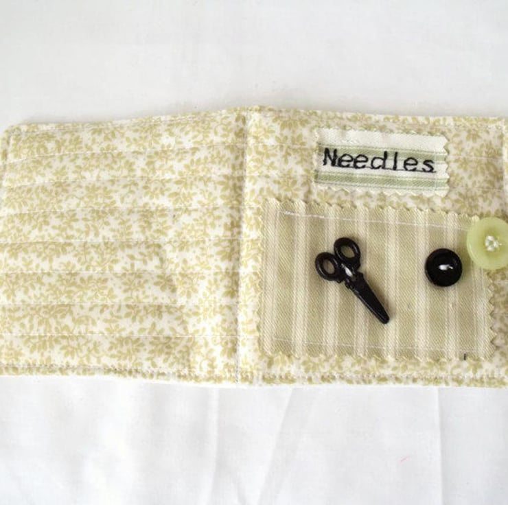 An inside pocket front and back for packs of needles or scissors.