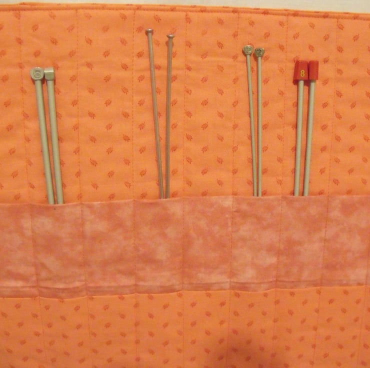 A useful knitting needle roll or storage for Tunisian crochet hooks.