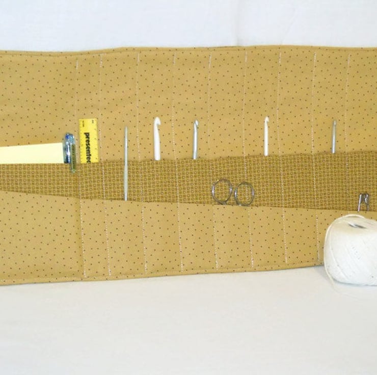 Useful storage solution to keep your hooks all in one place as well as your scissors, stitch markers, needles, pins, tape measure and notelets etc.