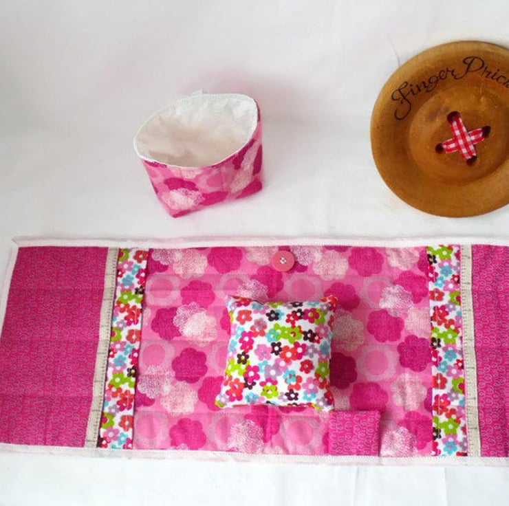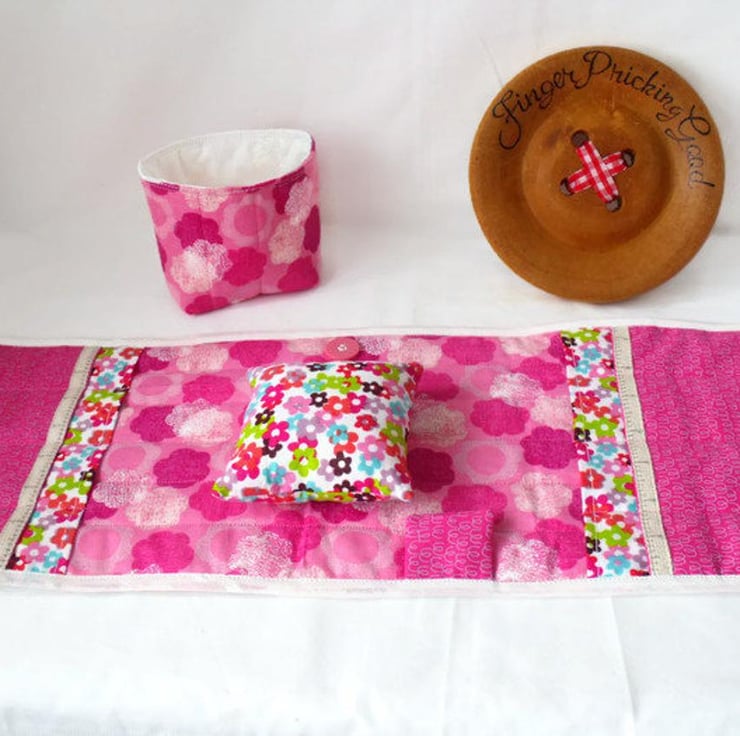 It has a removable pin cushion that attaches to the main fabric with velcrose.