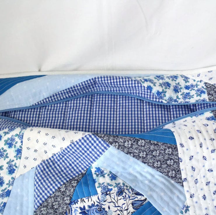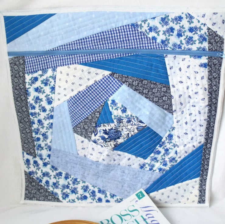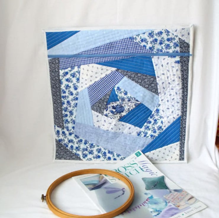 Large quilted patchwork zipped pouch. Embroidery pouch, project bag.