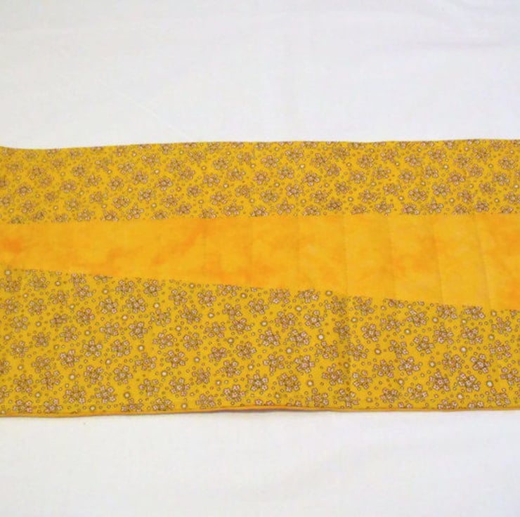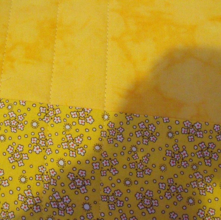 sewn with gold marbled cotton fabric and matching gold fabric with tiny white daisy print.