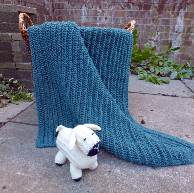 The lamb featured in some of the photographs is knitted from my Lucy Lamb pattern and incorporates the stitch pattern used to make this blanket. Lucy Lamb can be found here:
