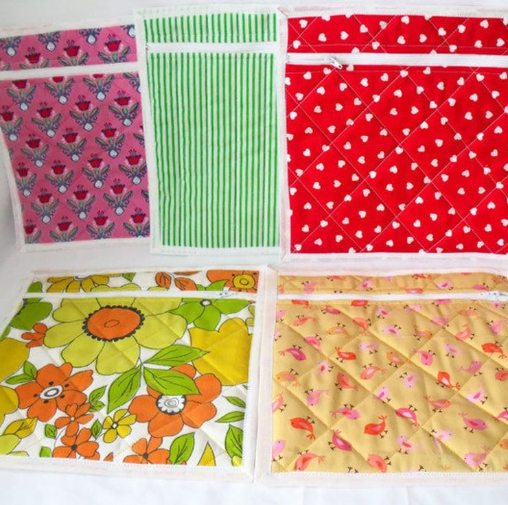 Versatile quilted patchwork zipped pouch to store your embroidery, cross stitch, pencils, crochet hooks etc.
