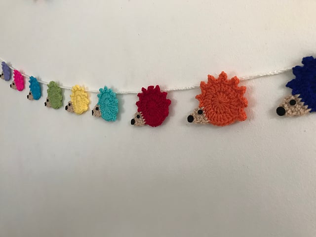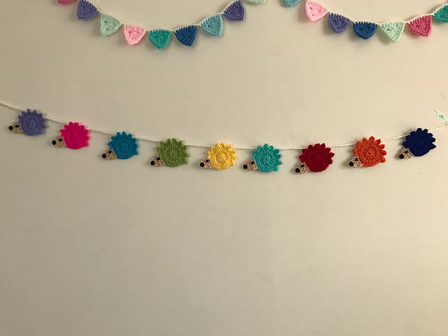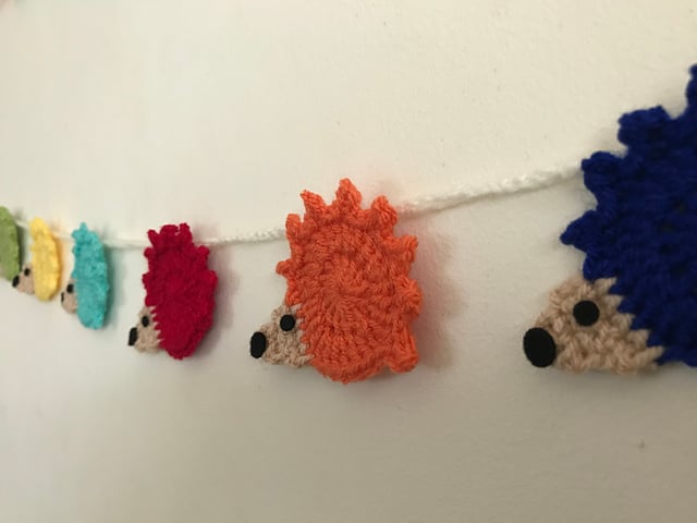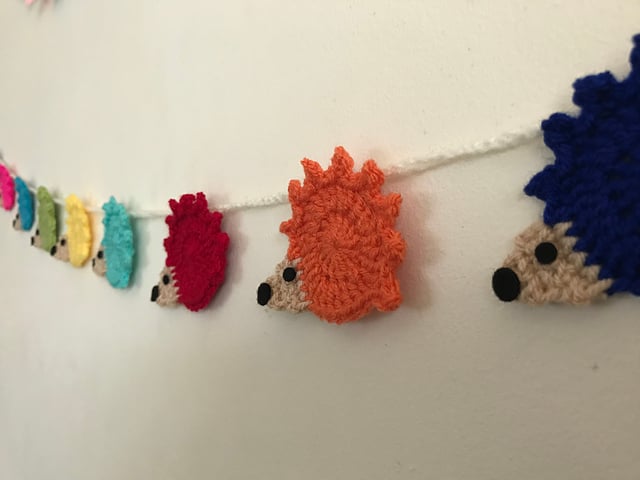 The bunting measures approx 38 inches long, with each hedgehog around 3 inches wide