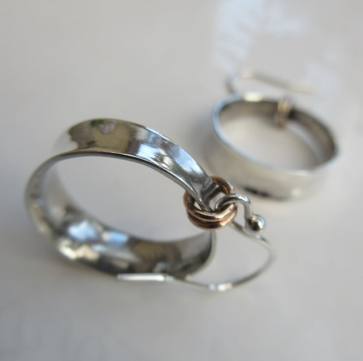 Handmade Sterling Silver & 9ct Gold Flared Hoop Earrings