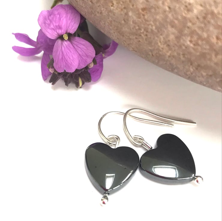 These pretty earrings are made from heart shaped hematite with hand crafted sterling sliver fittings. Perfect for Valentines or any other occasion. See my shop for matching bracelet.