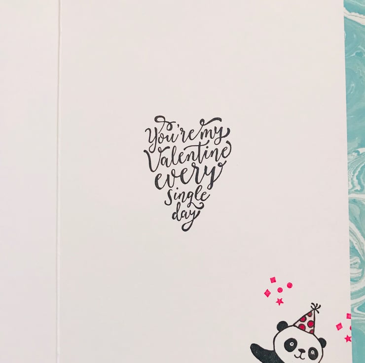 These party pandas have become a firm favourite and I wanted to share them with everyone. This valentine card features all three who are cute and friendly wishing you to be their valentine.