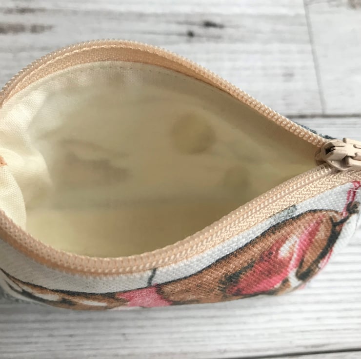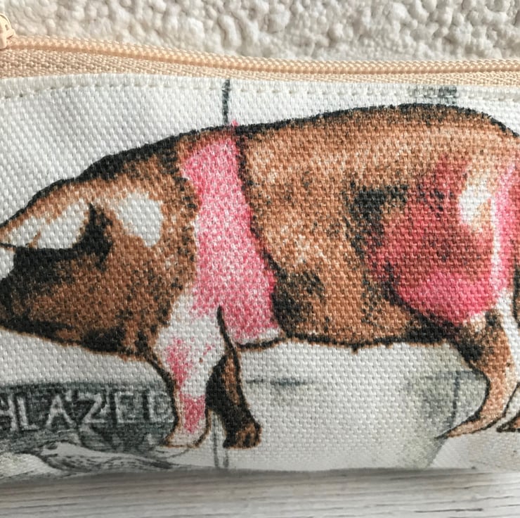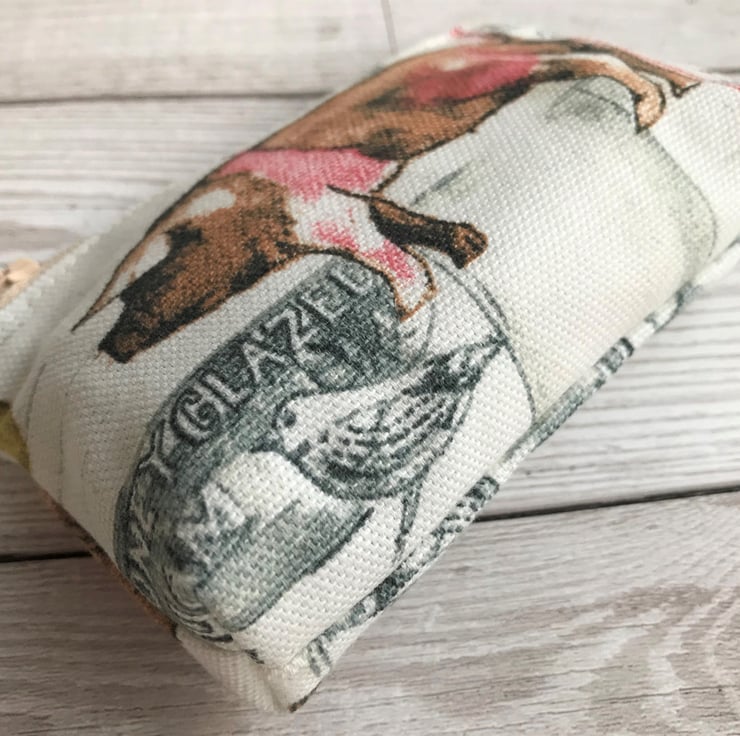 This handy little coin purse will fit into the smallest of handbags but is just large enough to hold cash and a bank card and would also hold a lipstick. It would make a lovely gift for anyone who loves pigs or rural life.