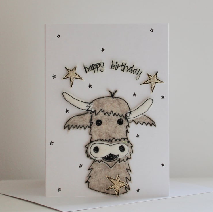 This little cow is shouting 'happy birthday' from the front of this card!